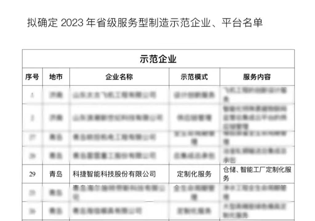 近日,山东省工业和信息化厅公示了2023年省级服务型制造示范企业、平台名单,尊龙凯时智能成功入选2023年省级服务型制造示范企业,再获省级荣誉认定。