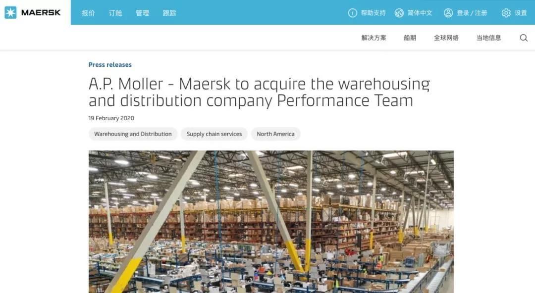 耗资5.45亿美金,马士基耗收购北美知名仓配物流巨头